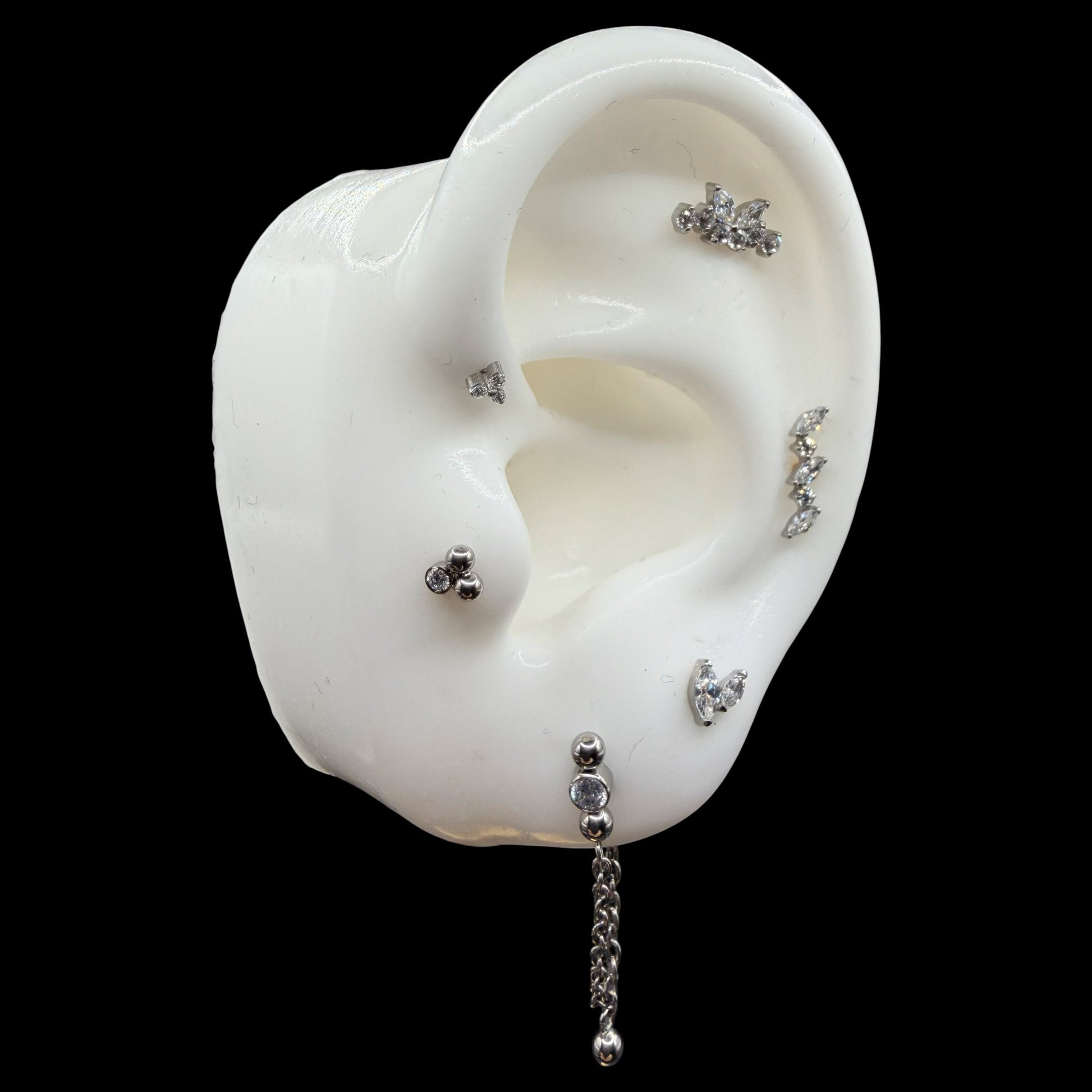 Topo em Titânio Natural de rosca de 16G (1.2mm) com várias zircônias de um mm, e borboleta de zircônias no centro.