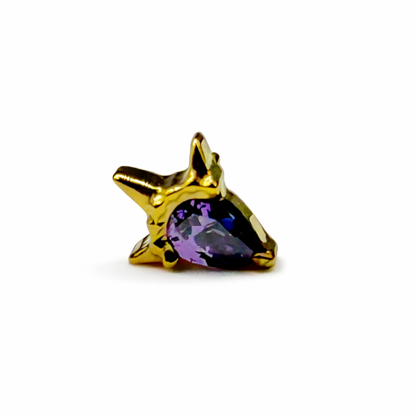 Topo Coroa Ametista de encaixe Threadless (push pin) em Titânio Natural e Titânio PVD Gold, composto por uma zircónia ametista.