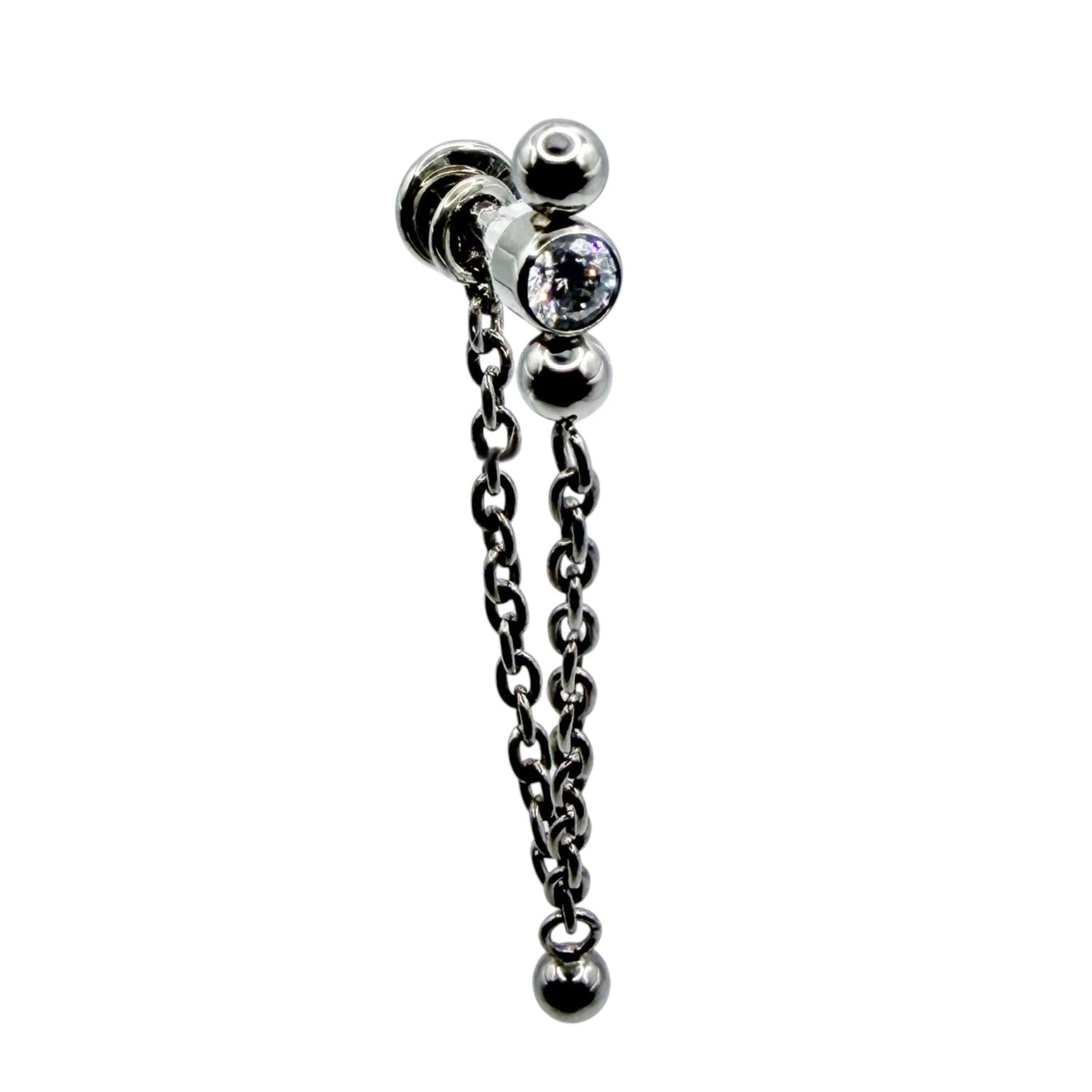 Topo em Titânio Natural e Titânio PVD Gold de rosca de 16G (1.2mm) com uma zircônia clear e duas missangas.