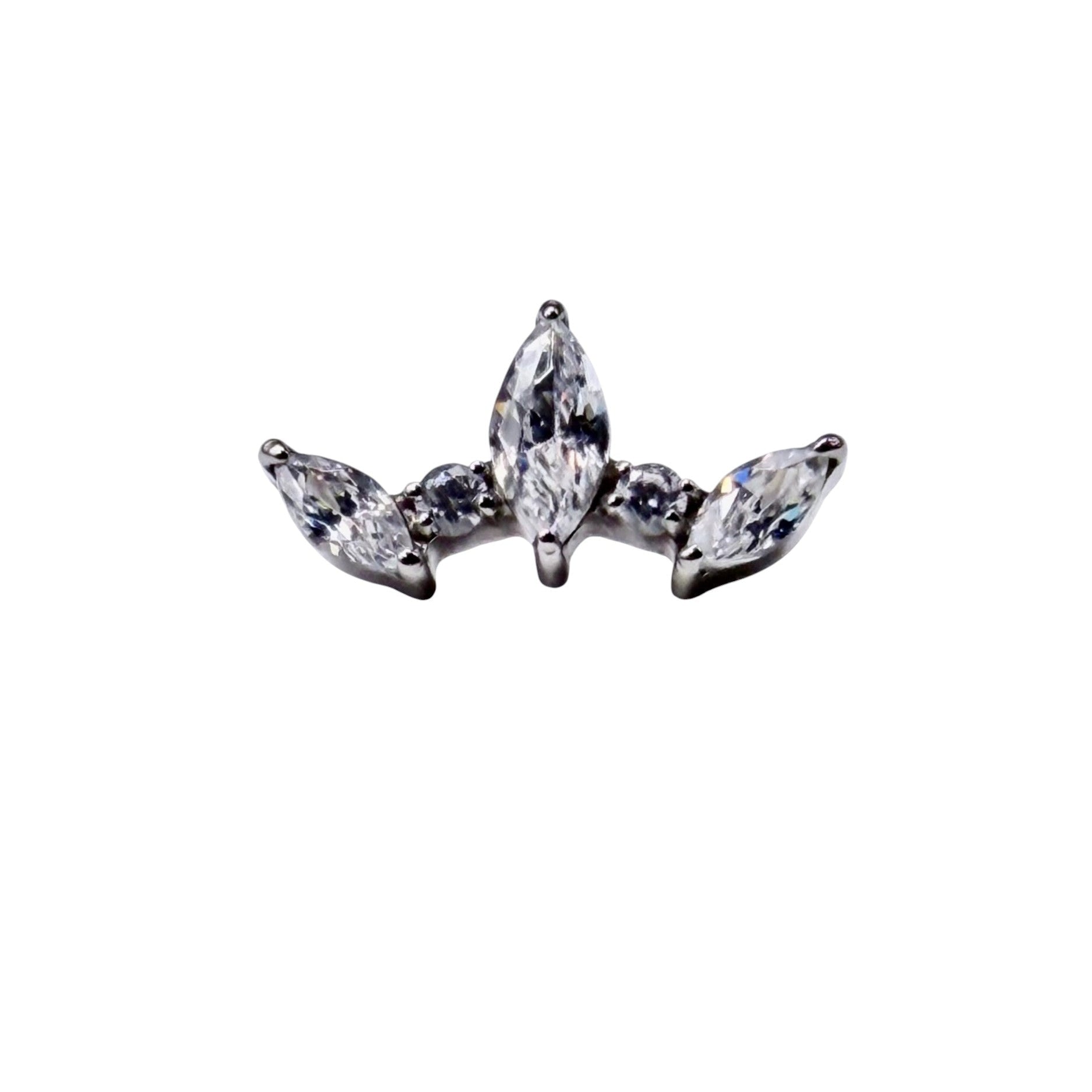 Topo de rosca 16G em Titânio Natural com cinco zircónias clear e Titânio Pvd Gold de rosca de 16G (1.2mm) com três zircónias esmeralda e duas zircónias clear.