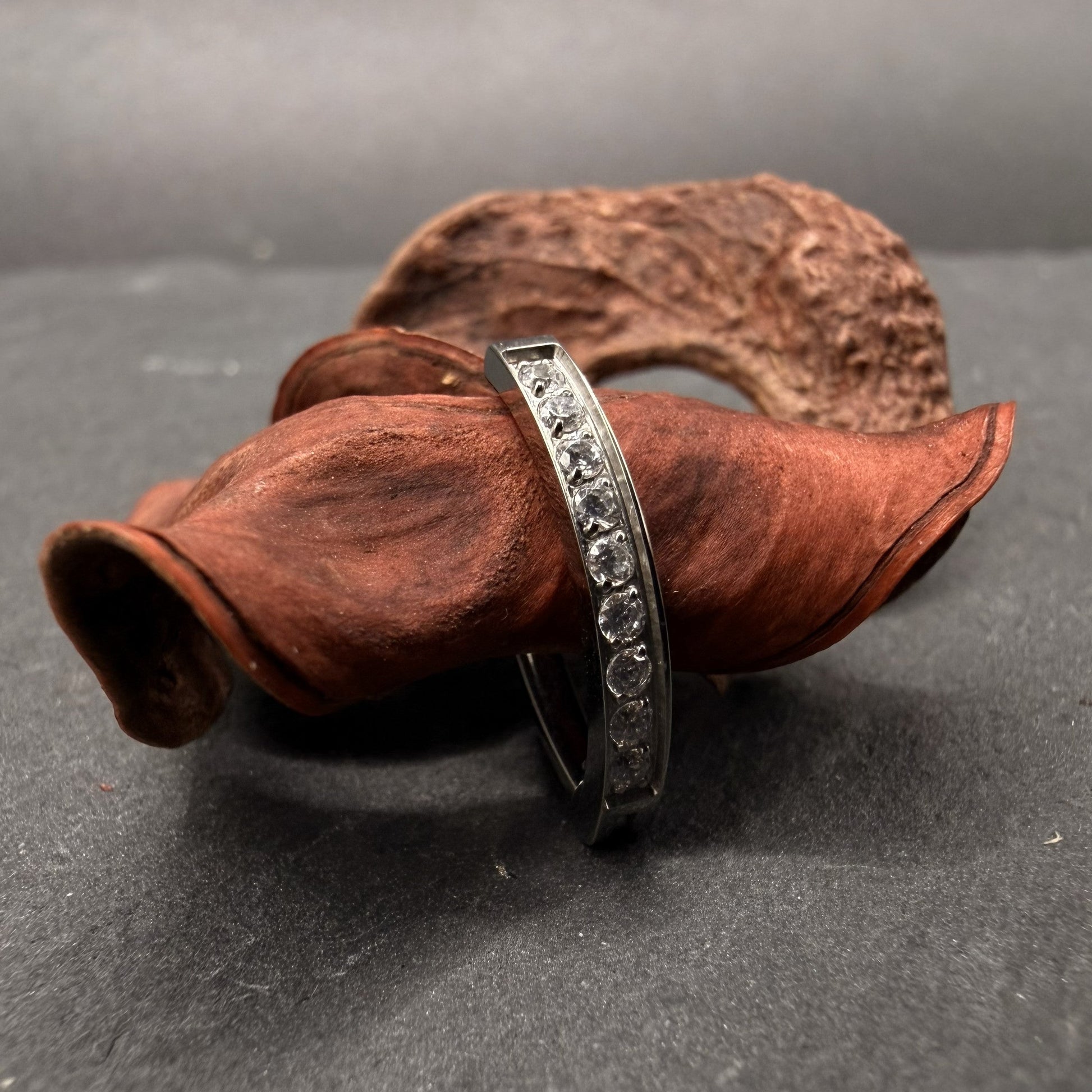 Piercing Navel em Titânio Natural de encaixe Clicker com zircónias cravadas.