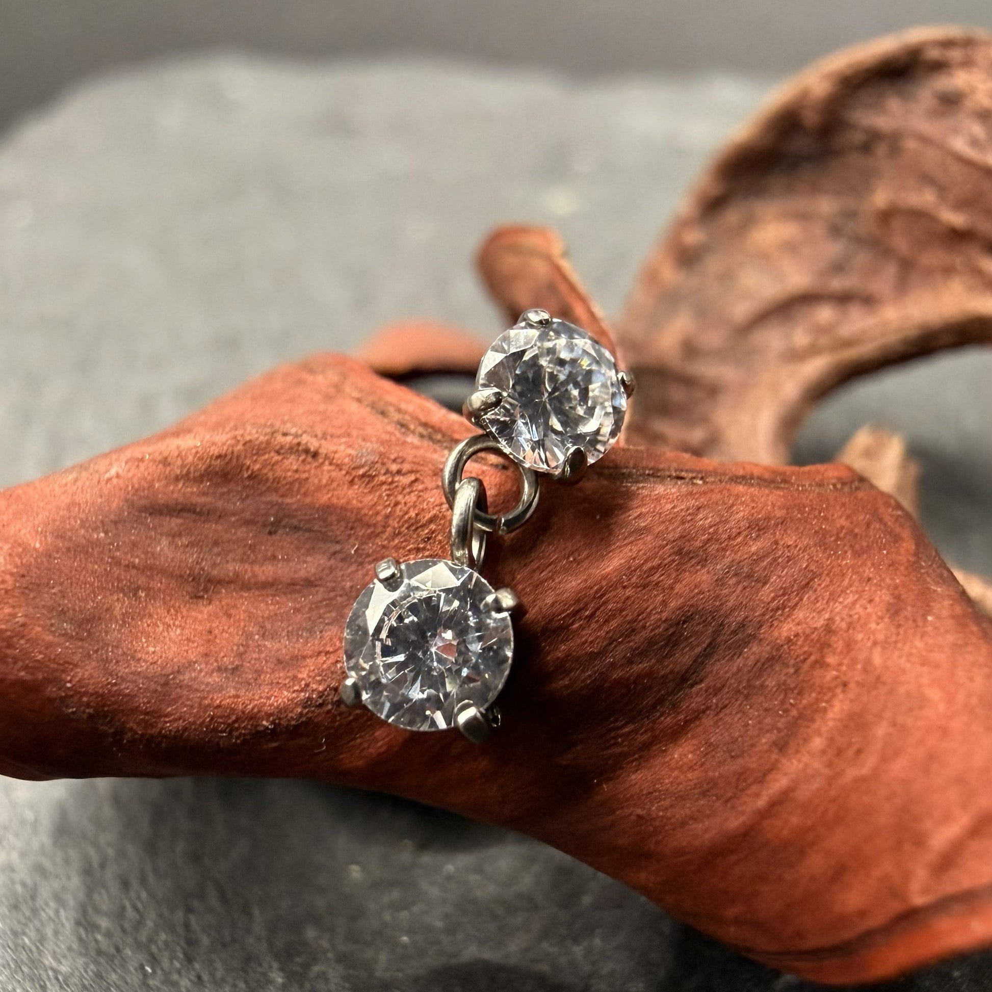 Topo de encaixe threadless em Titânio Natural composto por duas zircónias clear
