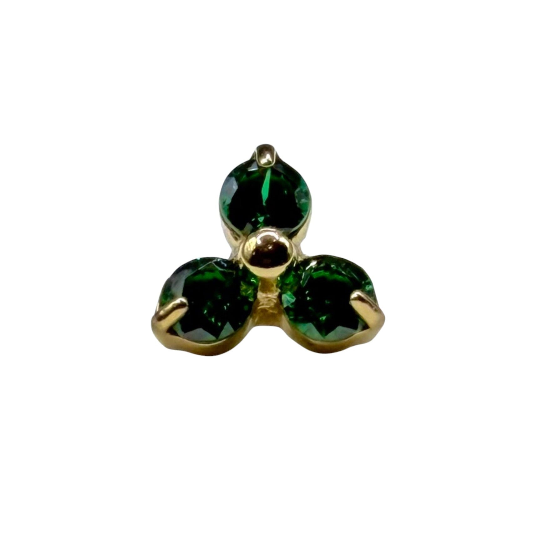 Topo de Rosca de 16G ( 1.2mm) de titânio Pvd Gold composta por três zircónias e uma missanga no centro